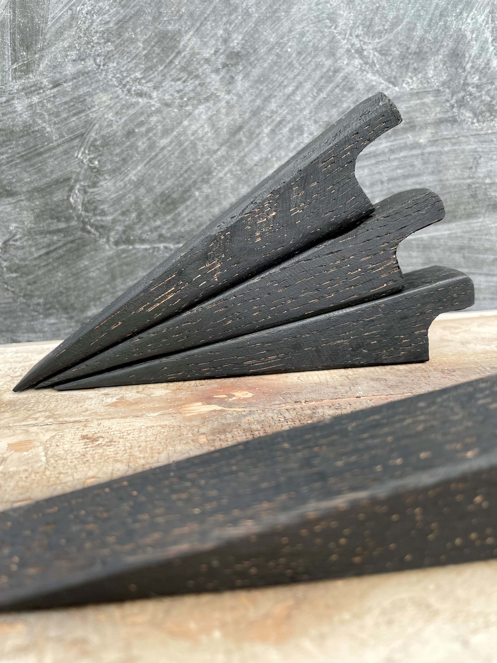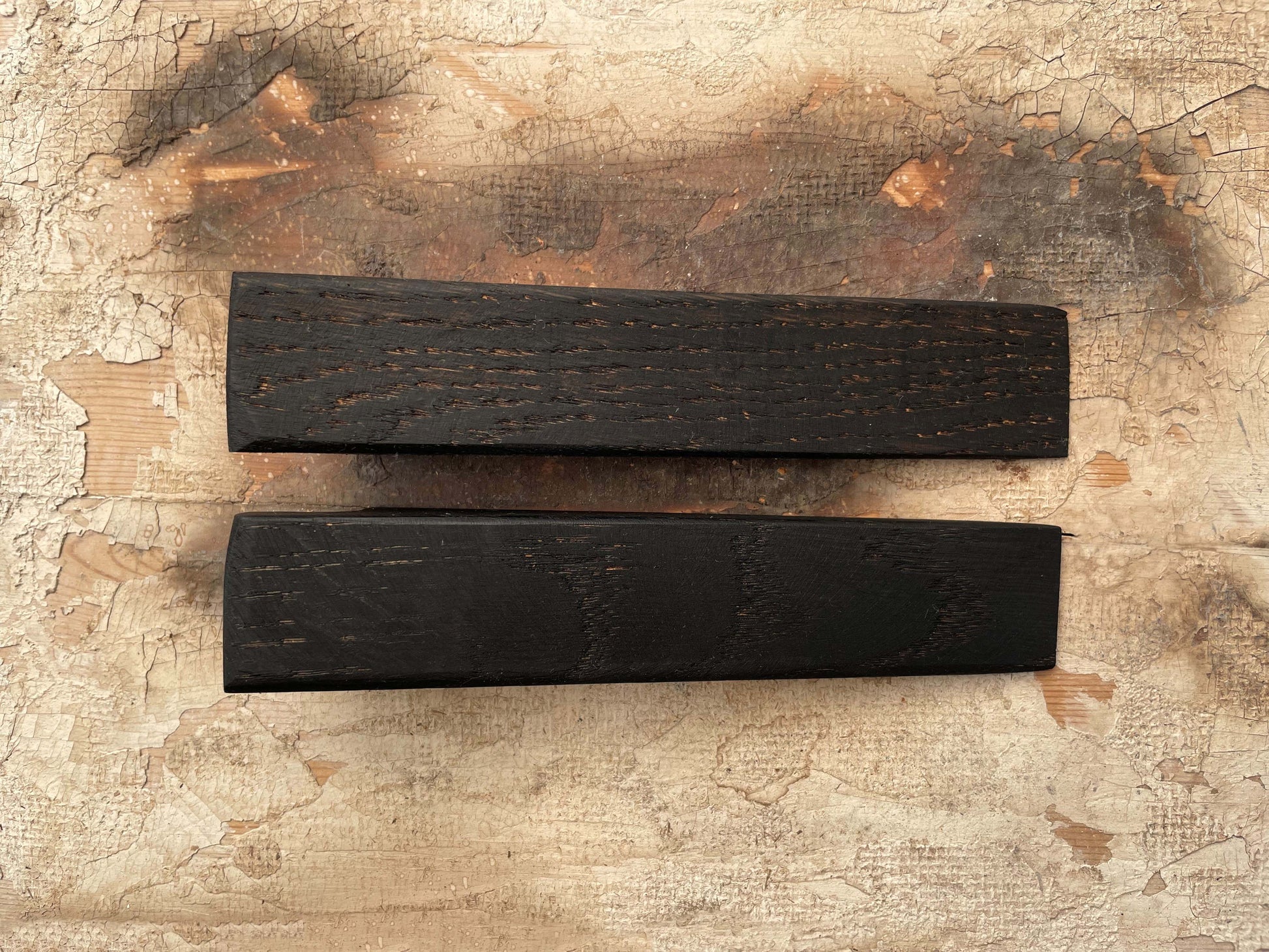 Each oak door stop wedge has been hand cut, shaped and sanded. Ebonised twice using ReWood's own patina to give them a deeply rich, dark colour, and bathed in food safe mineral oil.