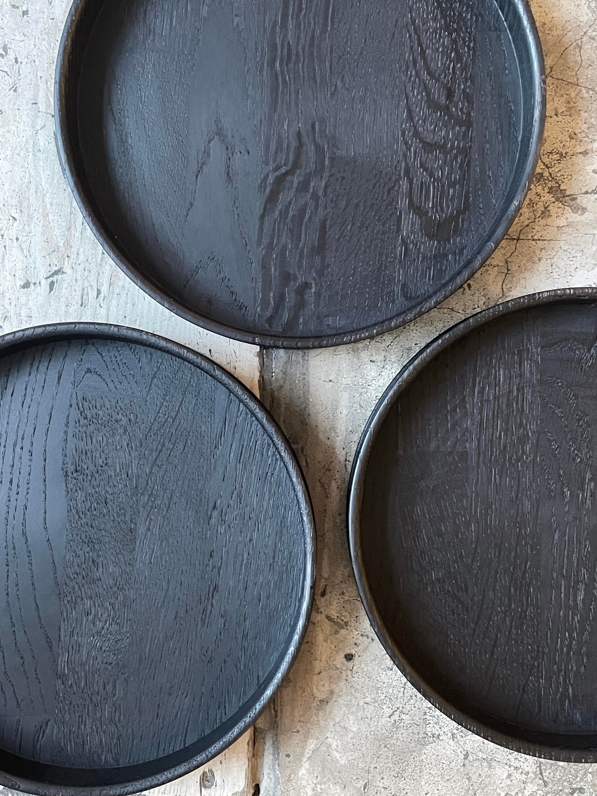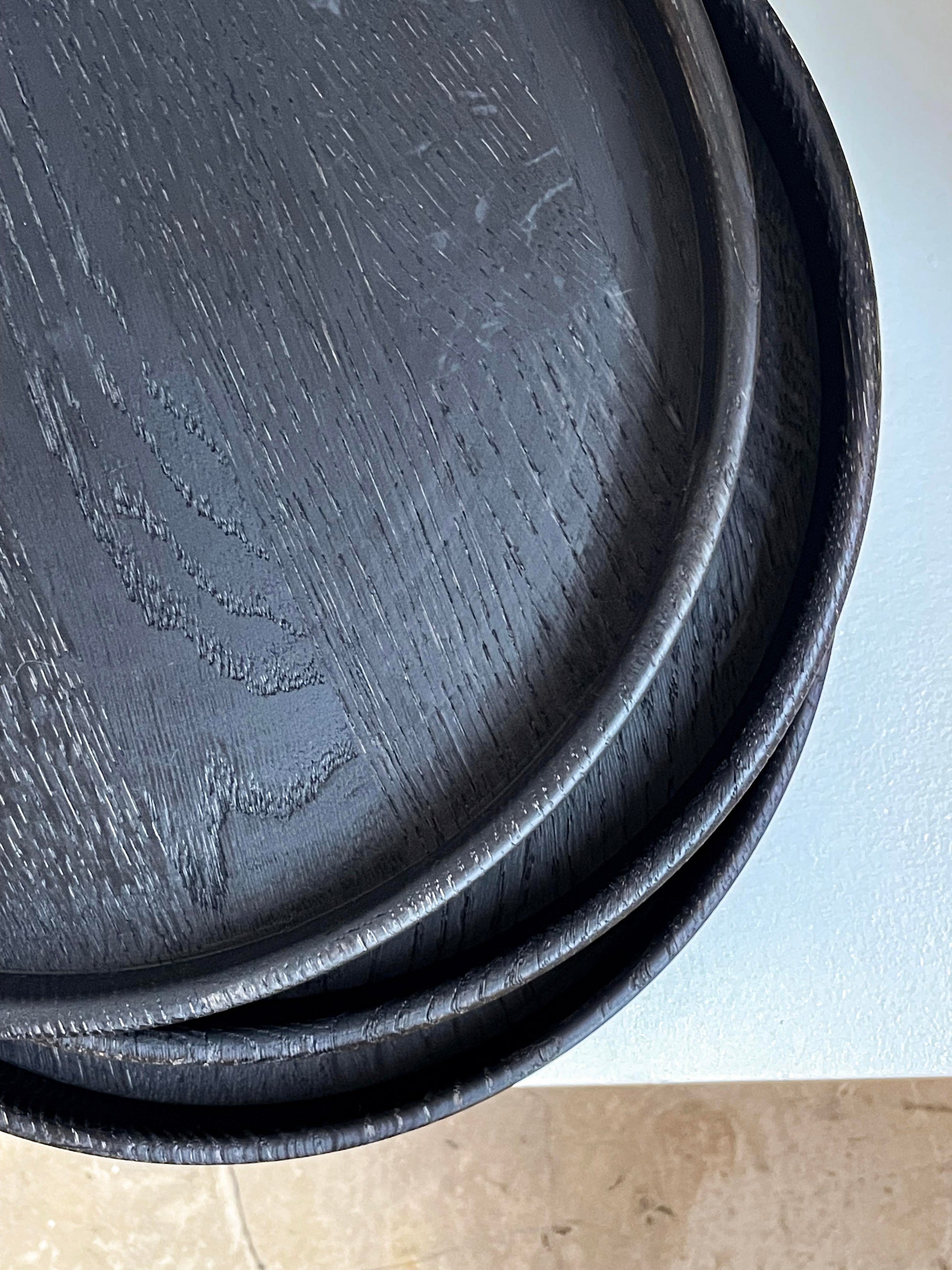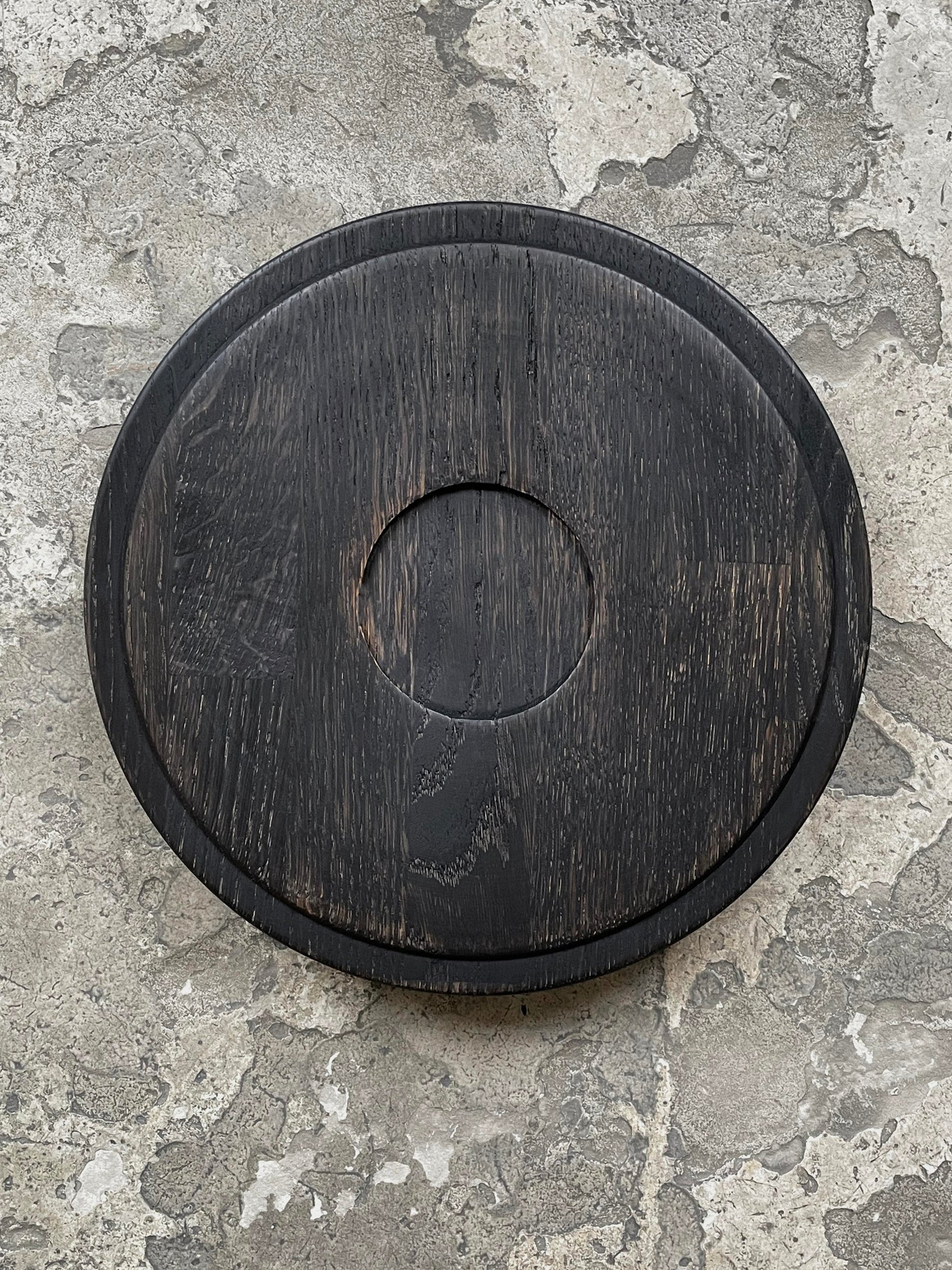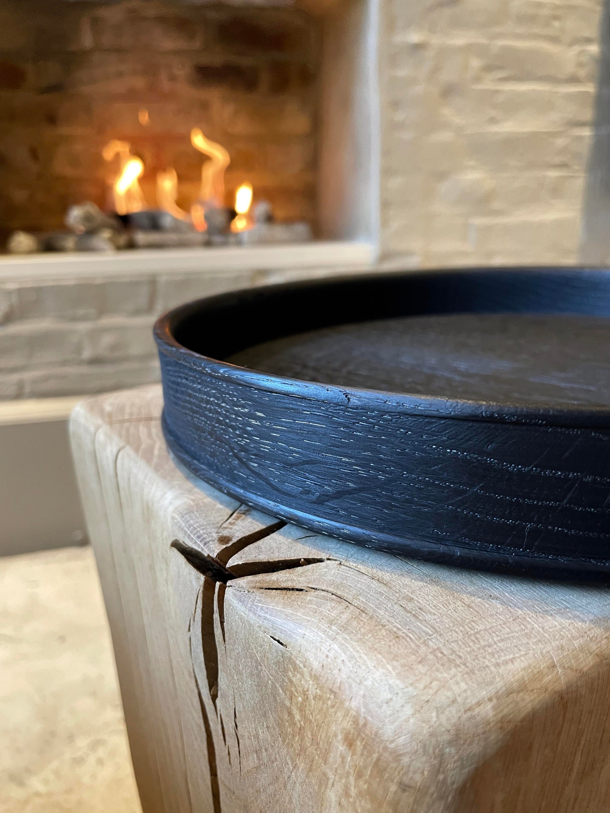 These stunning ebonised oak trays started life as a kitchen worktop. Turned on the lathe with top and bottom lip detail and ebonised using ReWood's own patina to this deep, almost black colour. Finished with an overnight drench in food safe mineral oil.