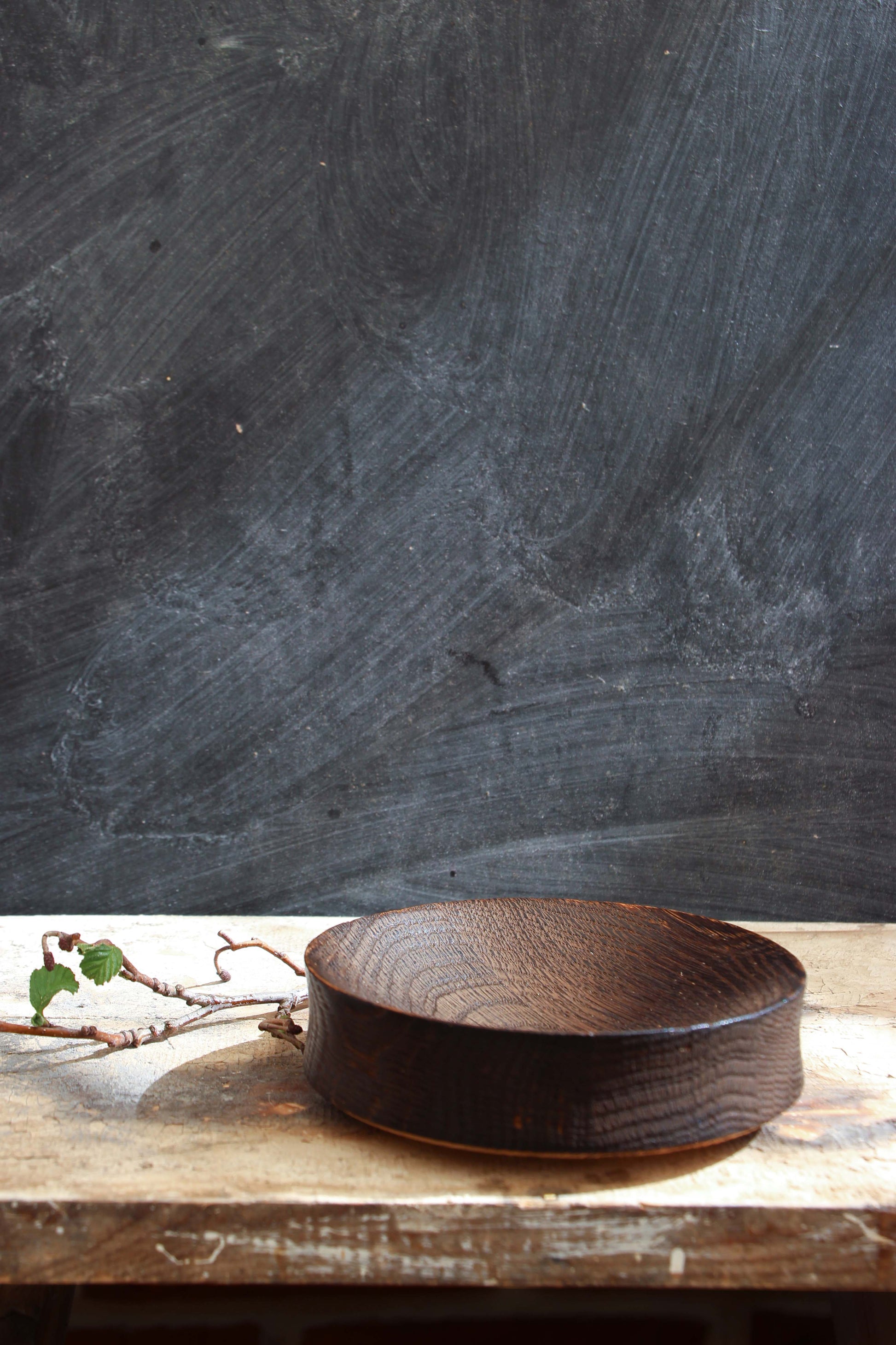 Lovely reclaimed oak, angular pillow catch bowl, with fire treatment to darken and bring it the grain texture.