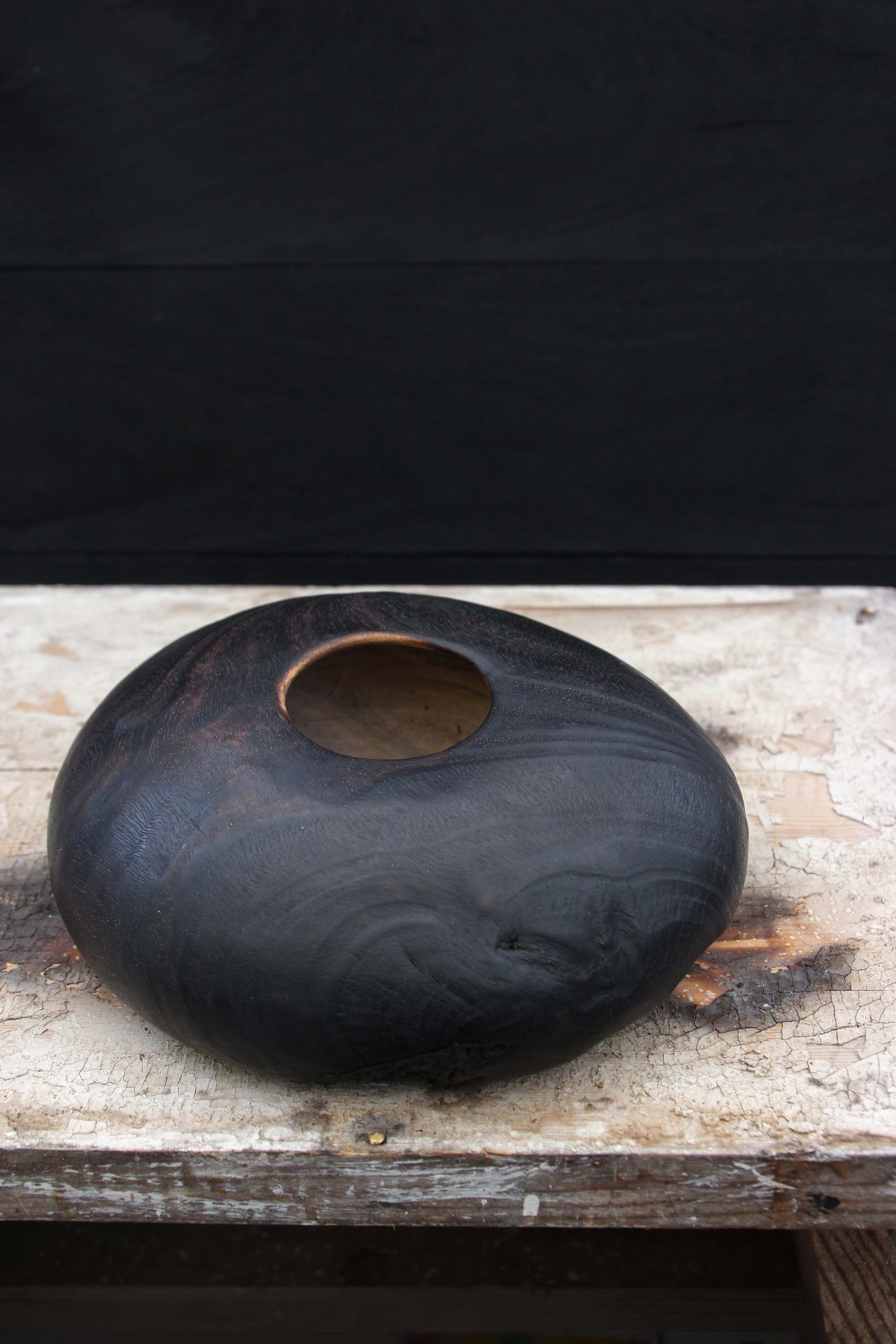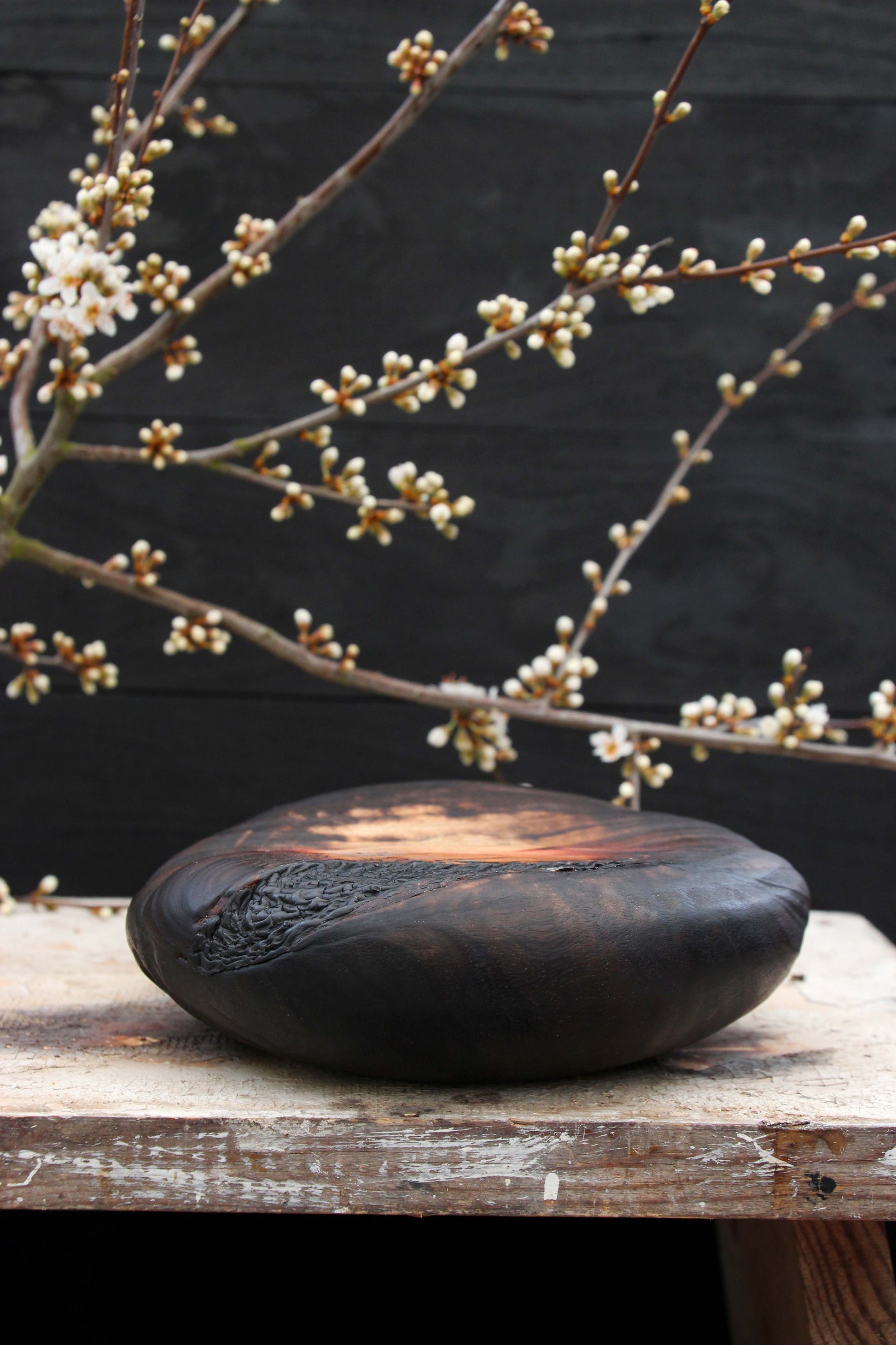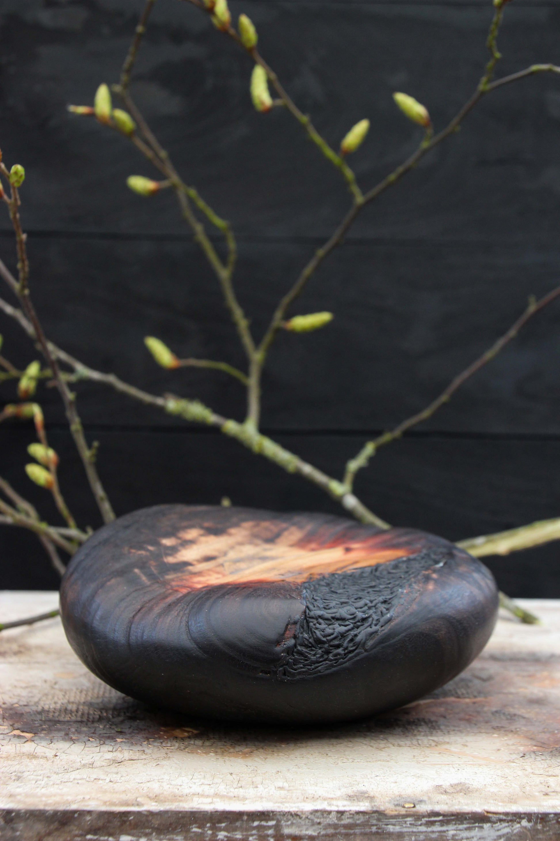 While freshly turned and still wet, it was then scorched with fire on the outside, rubbed down with wire wool and put aside to do its thing.