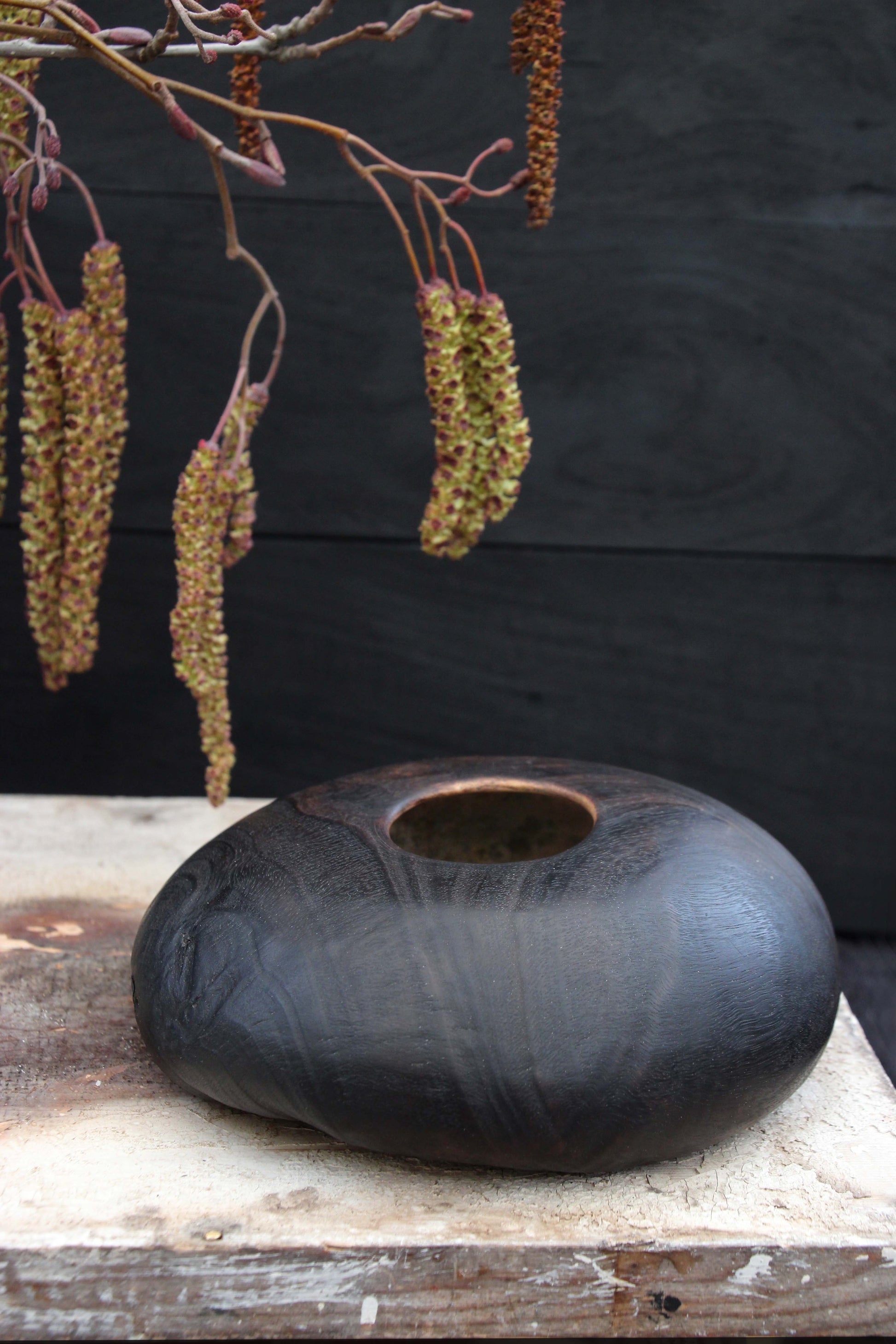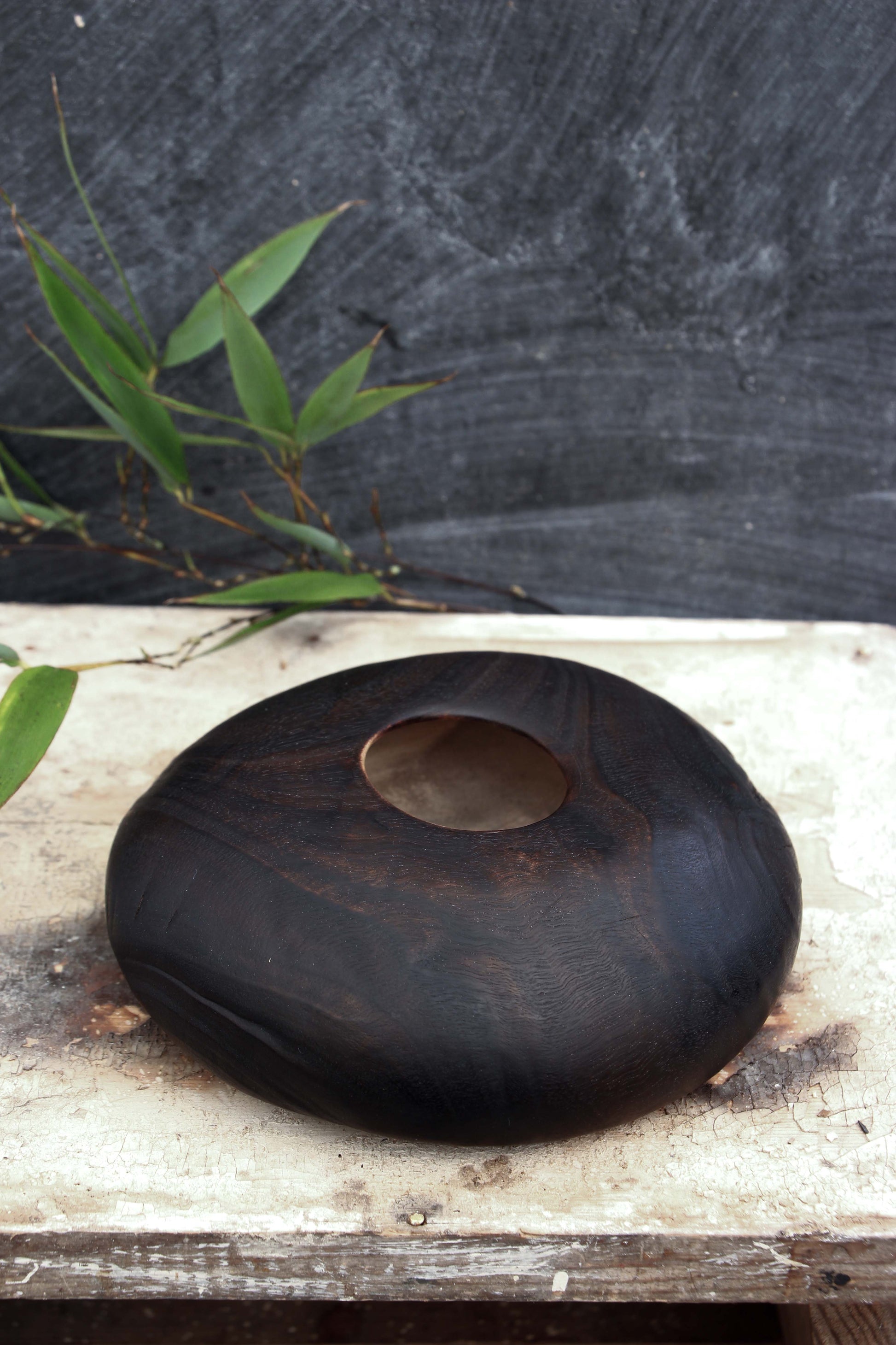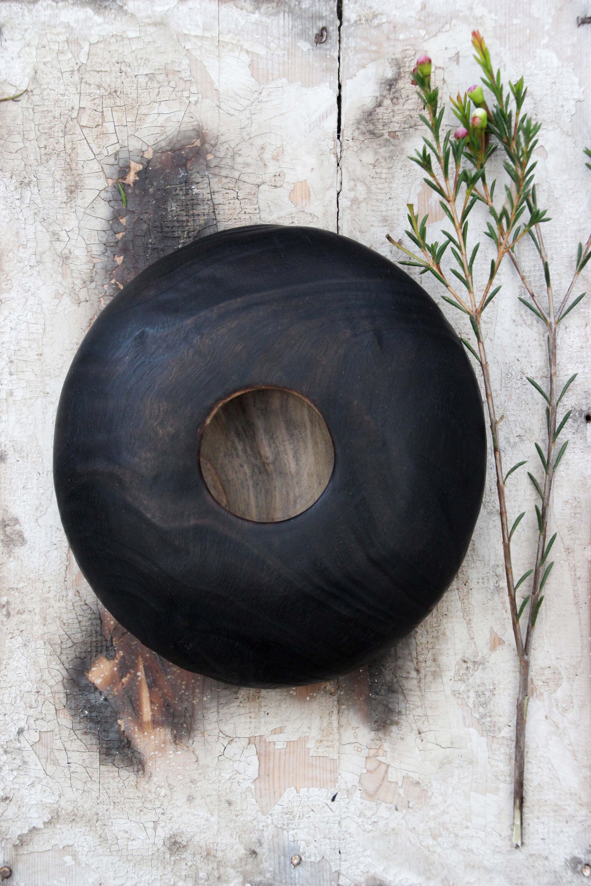 While freshly turned and still wet, it was then scorched with fire on the outside, rubbed down with wire wool and put aside to do its thing.