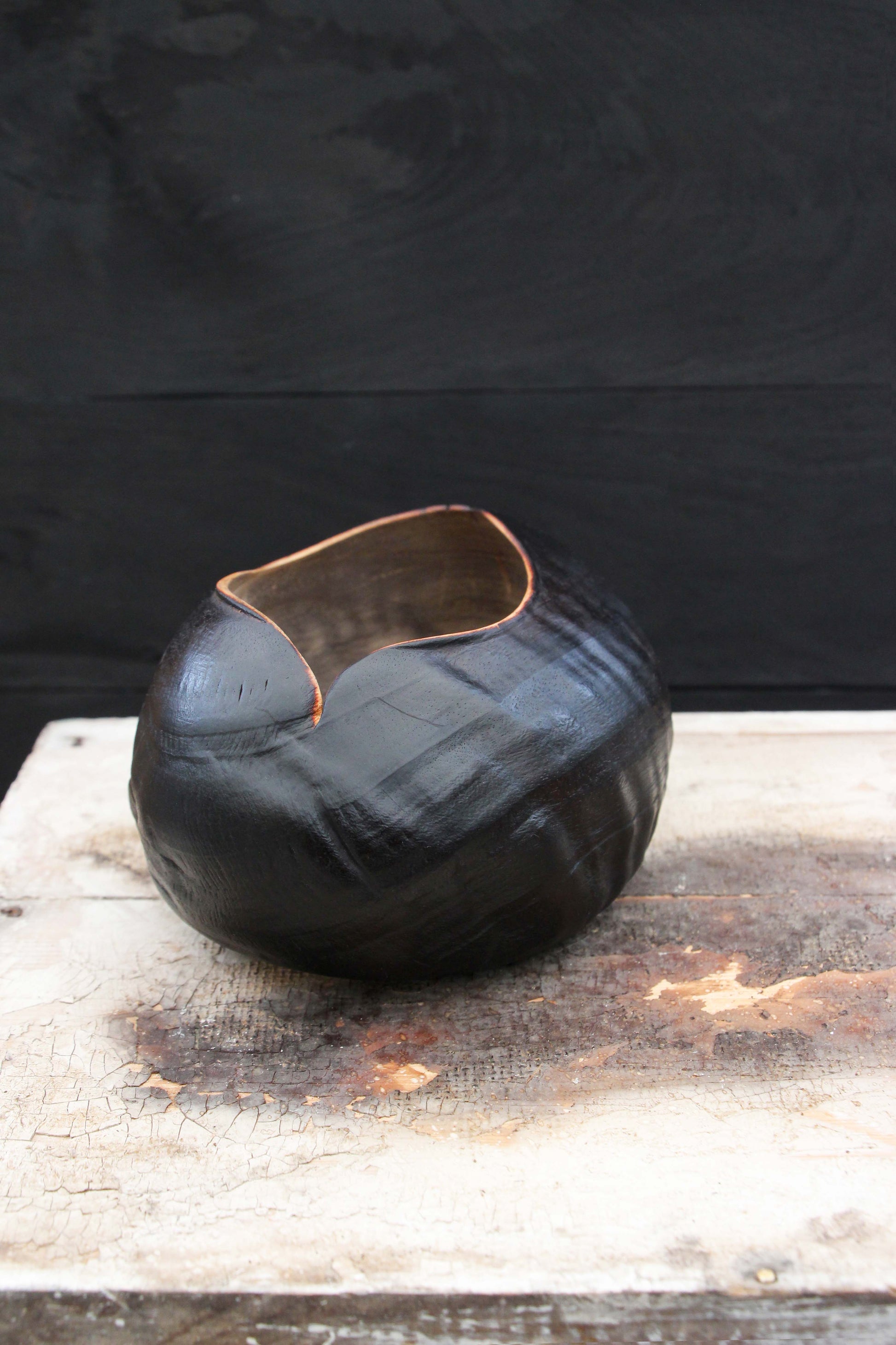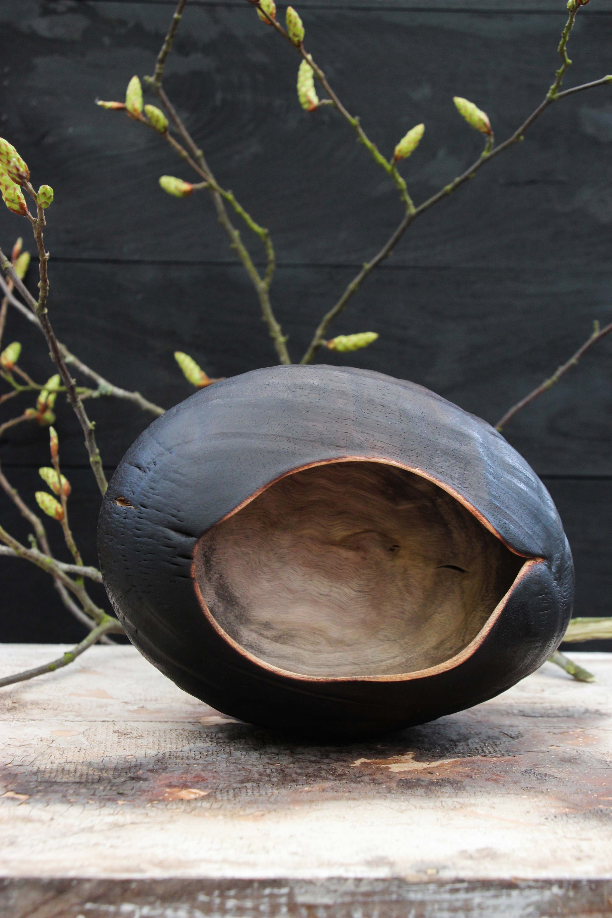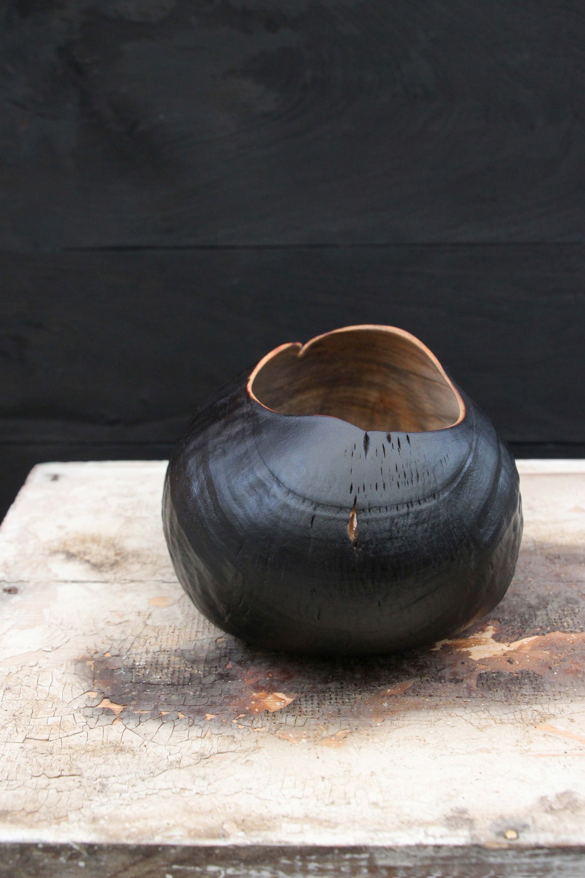 While freshly turned and still wet, it was then scorched with fire on the outside, rubbed down with wire wool and put aside to do its thing.