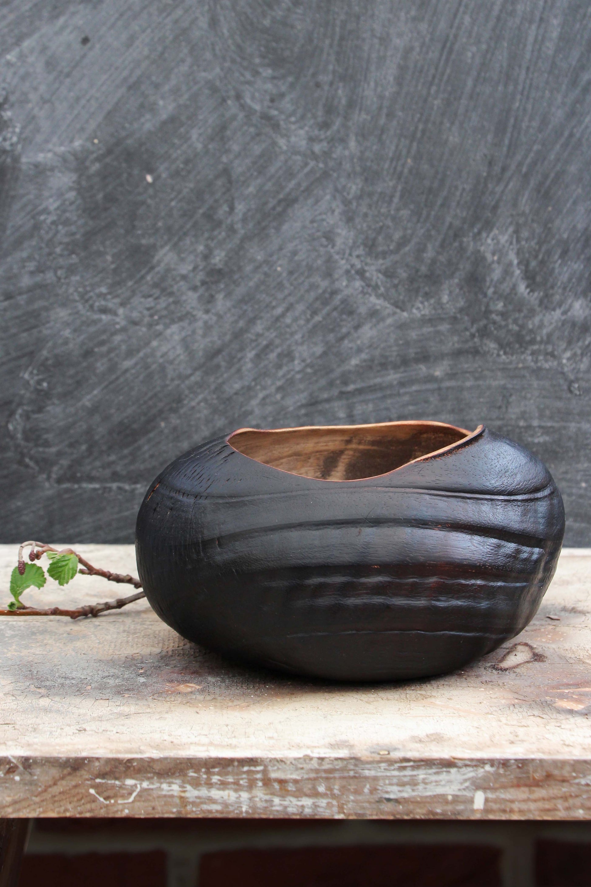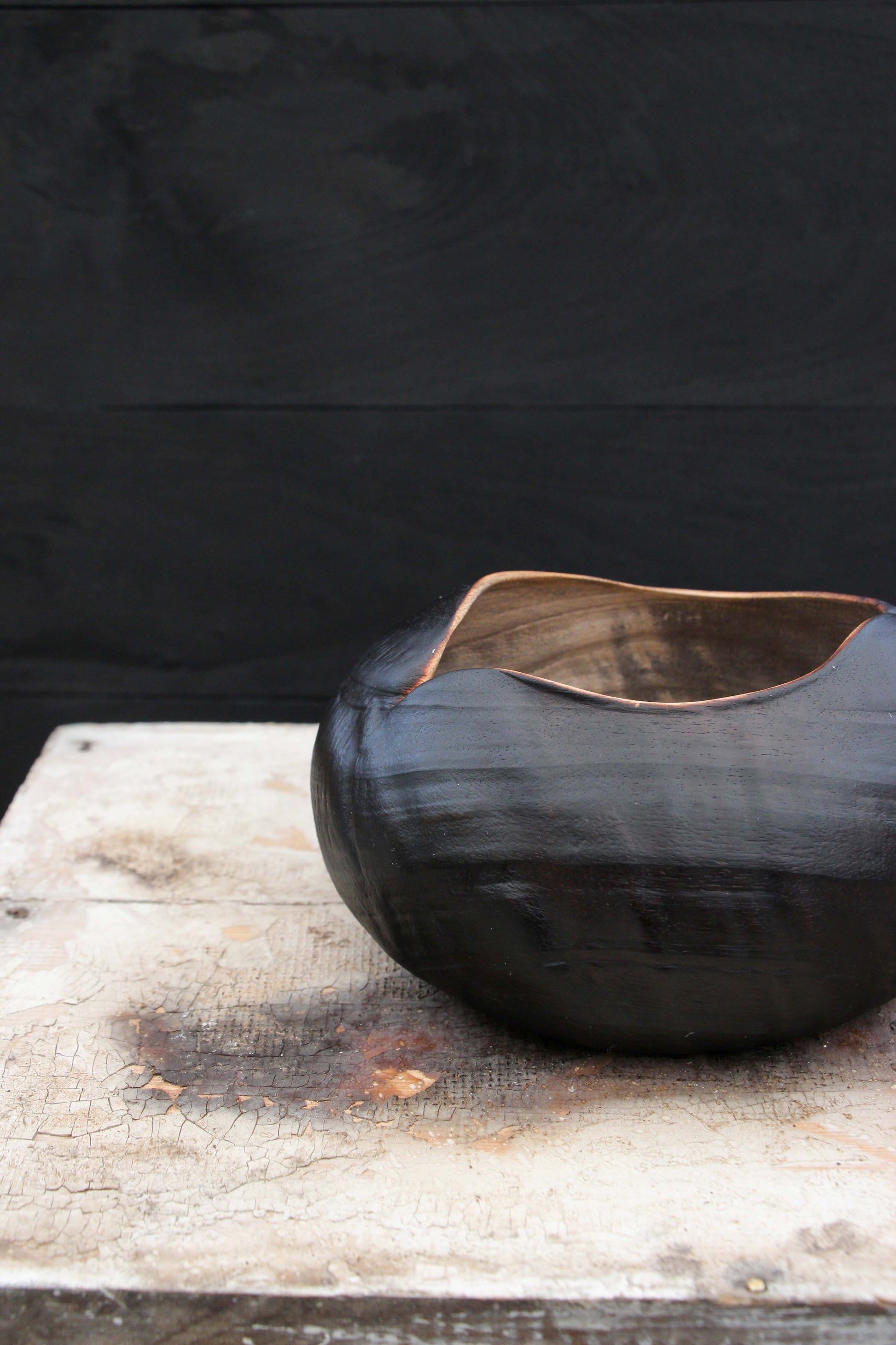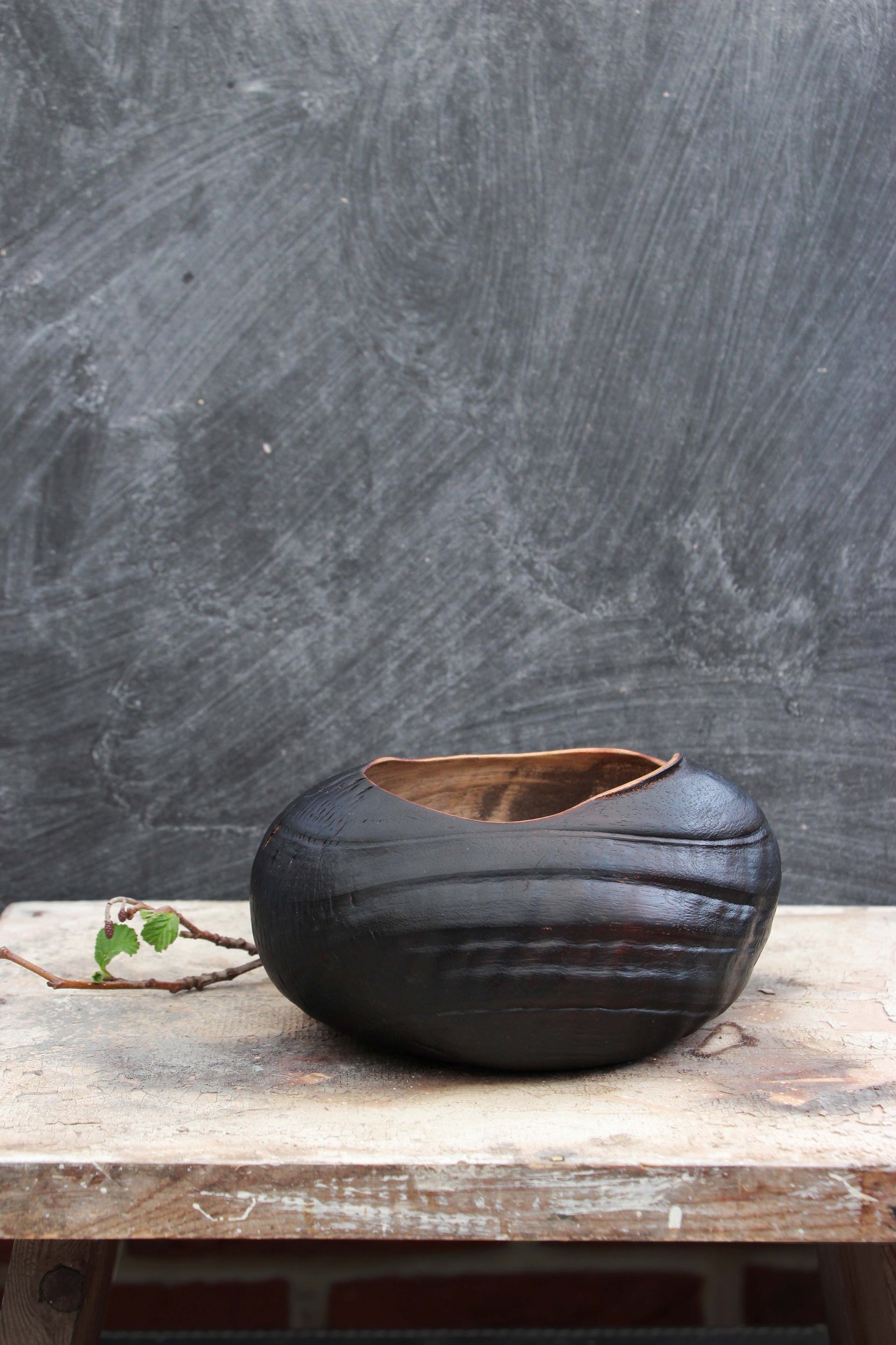 While freshly turned and still wet, it was then scorched with fire on the outside, rubbed down with wire wool and put aside to do its thing.