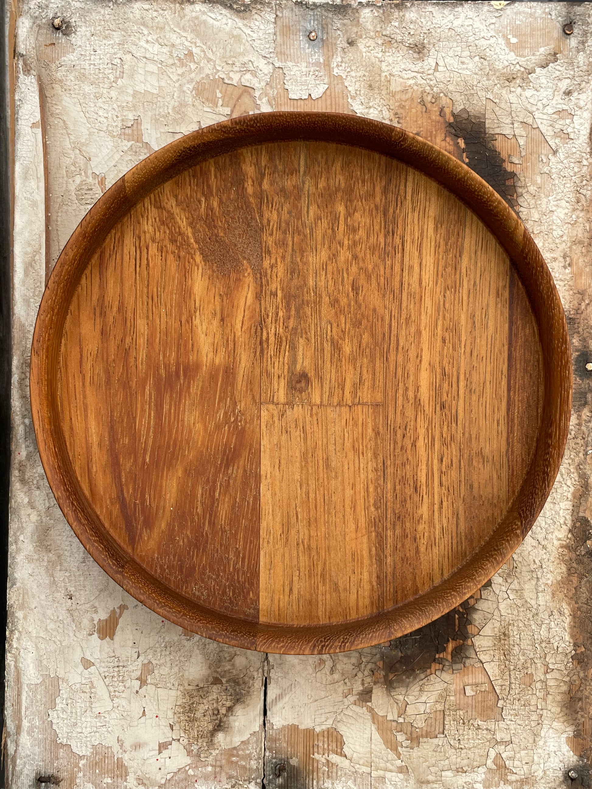 These nesting trays are turned from pieces of reclaimed Iroko kitchen worktop and fit beautifully within each other.